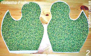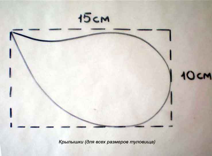 4. Вырезаем крылышки. Это две ПАРНЫЕ детали, каждая из которой представляет собой маленький «сэндвич»: верхняя часть, синтепон-прокладка и подкладка из ткани.