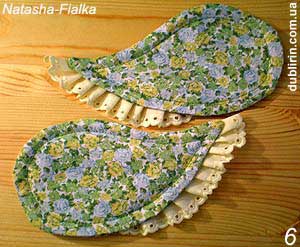 Для большей декоративности можно отстрочить их теперь вдоль края (не забудьте увеличить шаг стежка до 3,5-4), украсить небольшой оборкой.