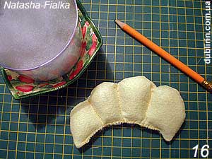 15. Срезаем излишки ткани (фетра). Здесь припуски нужно оставить минимальные – до 0,3 см. Выворачиваем. И – по желанию – можете прострочить вот такие декоративные линии (обязательно закрепляем строчку в начале и в конце каждой этой маленькой линии). Но можно оставить гребешок цельным.