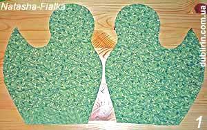 При желании можете простегать теперь каждую половинку. Как стегать, зависит от рисунка ткани и от вашей задуманной «картинки результата».