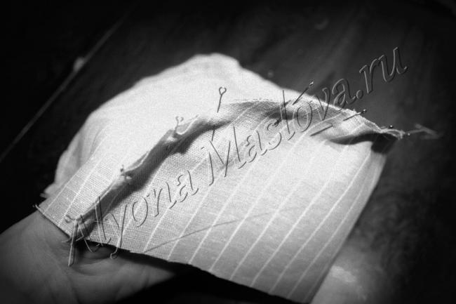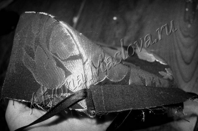 Отпарить припуск, укладывая его на донце, деталь кулиски сложить, а ещё лучше закрепить булавками.