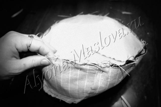Заутюжить шов укладывая его на донце. Подклад должен быть чуть меньше, чем верхушка, что бы в готовом изделии не было ненужной слабины, что было заложено в крое припуска 7 мм.